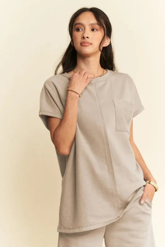 Davi & Dani Round Neck Short Sleeve Top and Pants Set