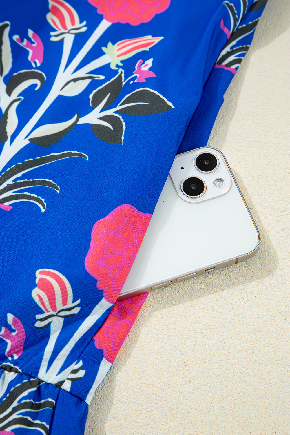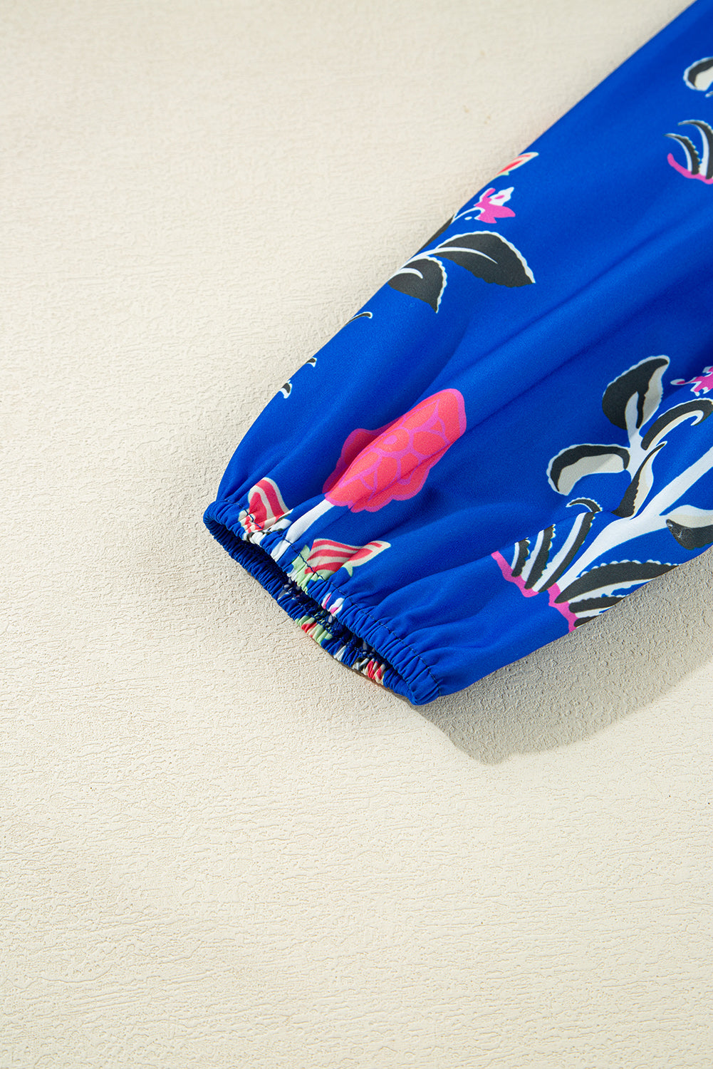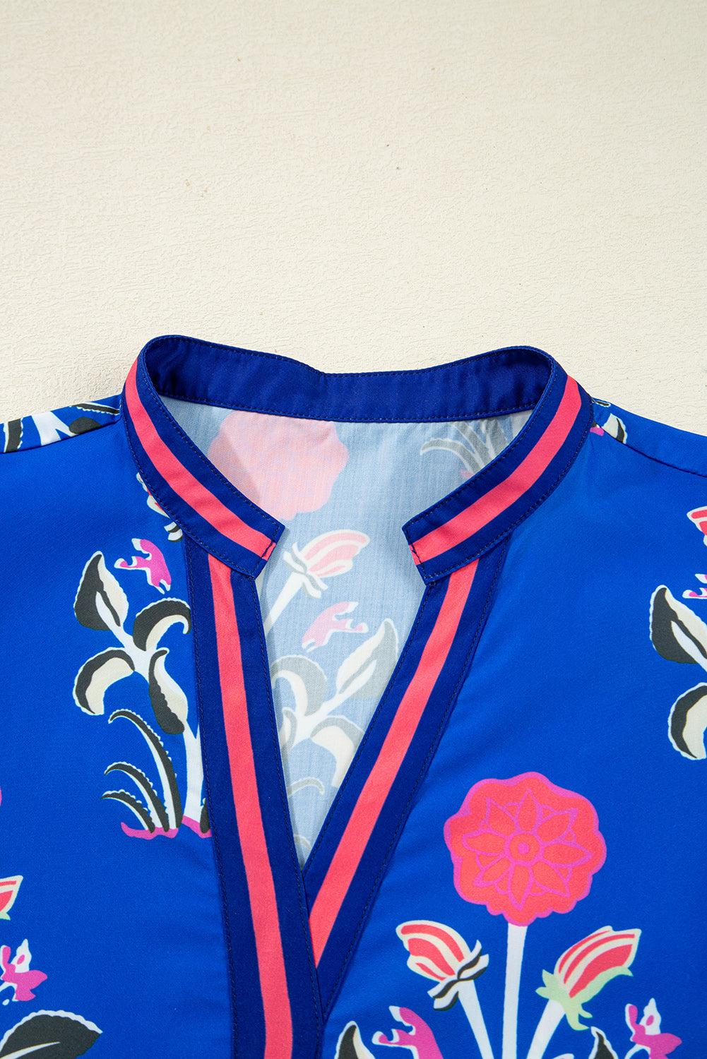 This sky blue dress features an elegant floral print accented by a chic striped trim, creating a modern contrast design. The notched neckline adds a refined touch of sophistication and uniqueness. Designed with long sleeves, it offers versatility for transitional seasons. Lightweight and comfortable, this dress effortlessly suits both casual and dressy occasions, making it a practical yet stylish addition to your wardrobe.