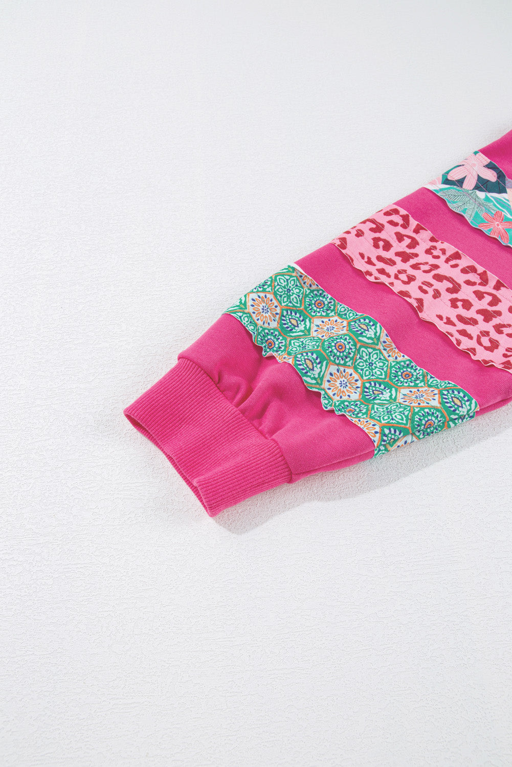 Rose Red Plus Size Printed Patchwork Sleeve Split Sweatshirt